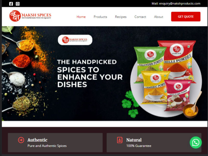 Price: Rs. 16,000 Duration: 5-6 hours Content: Client provided Images: Client provided Industry: Spices Platform: WordPress